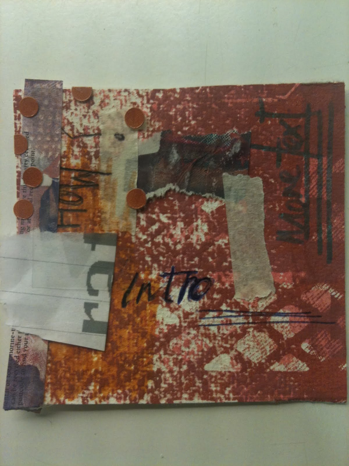I chose to merge the content ‘Graphic Design before Computers’ into my mixed media piece, as I felt that the content would be supported by the technique, texture and colour and vice versa. Each tile represents a page of a book which represents certain chapters of ‘Graphic Design before Computers.’ There is no specific order of the way it has to be looked at or read. The book is designed to illustrate freedom and demonstrates the outcome of mass experimentation. Silk-screen printing and collage were the dominant techniques in this piece, and the use of layering and overlapping was incorporated to create depth and a voice of freedom moreover, also enhance a sense of letting go. It made me realize that not every word has to be read, individuals can choose to pick out and read what they like.